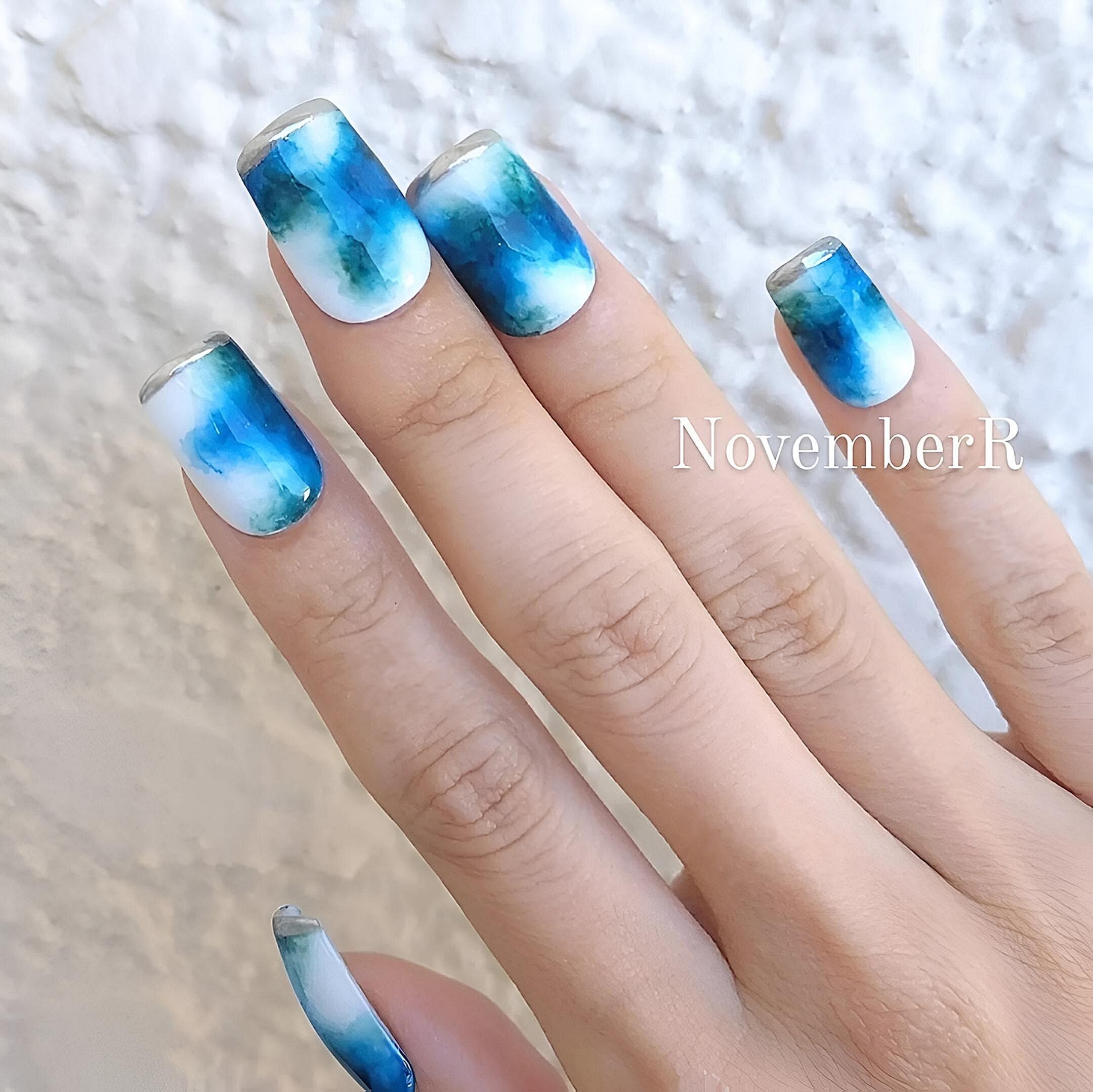 インクならではのぼかしニュアンス!先端にシルバーミラーでオシャレな爽やか夏ネイル