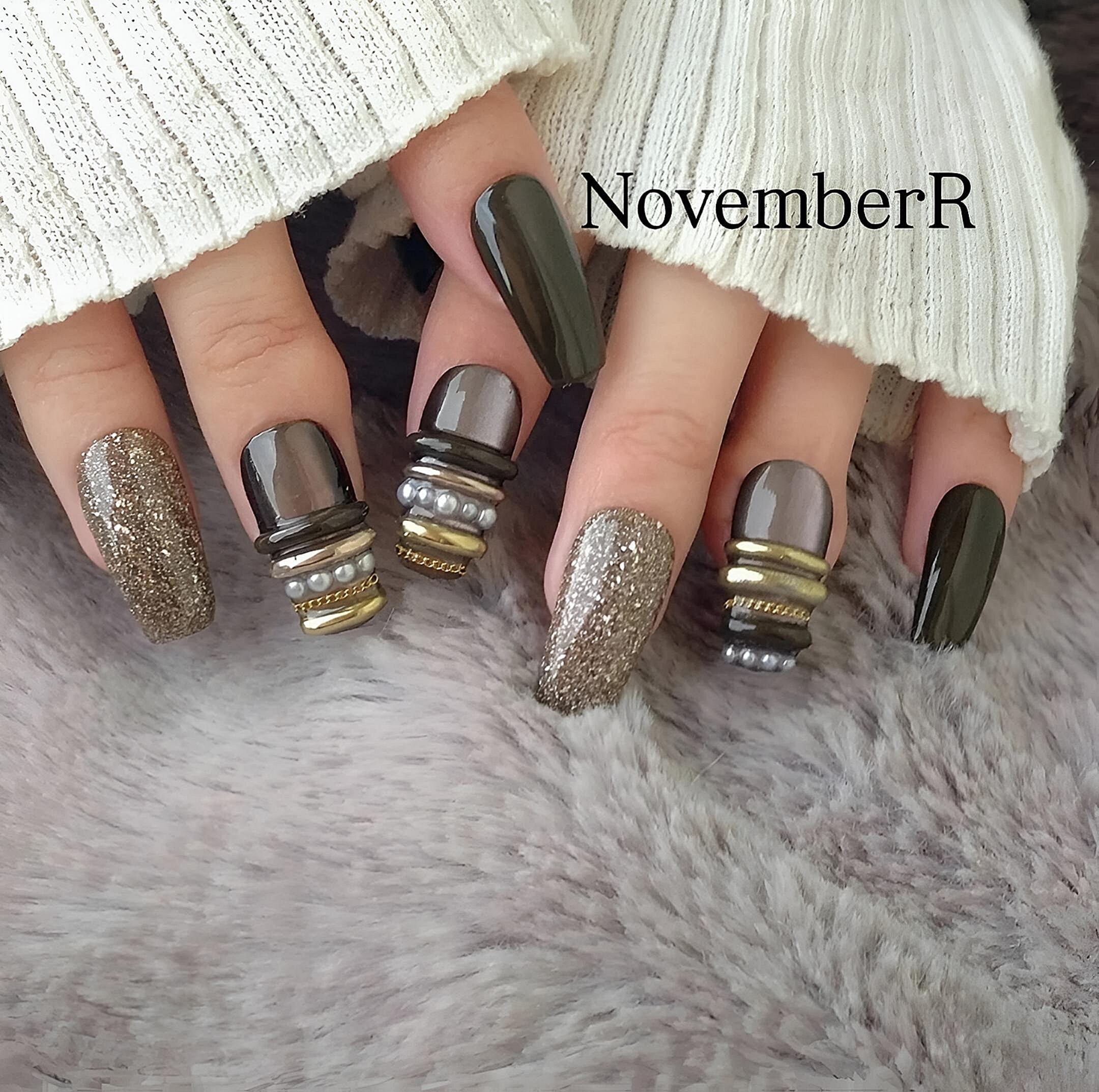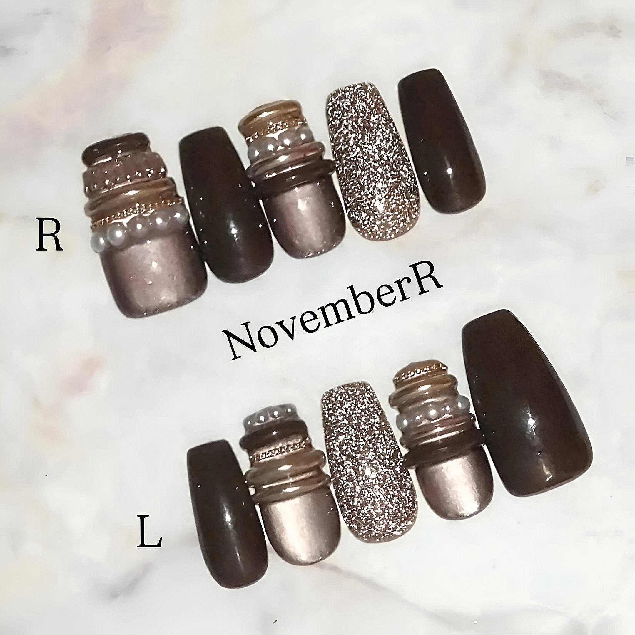 ブラウンマグネット、フラッシュ、ワンカラーのブラウン縛りでカッコいい大人ネイル