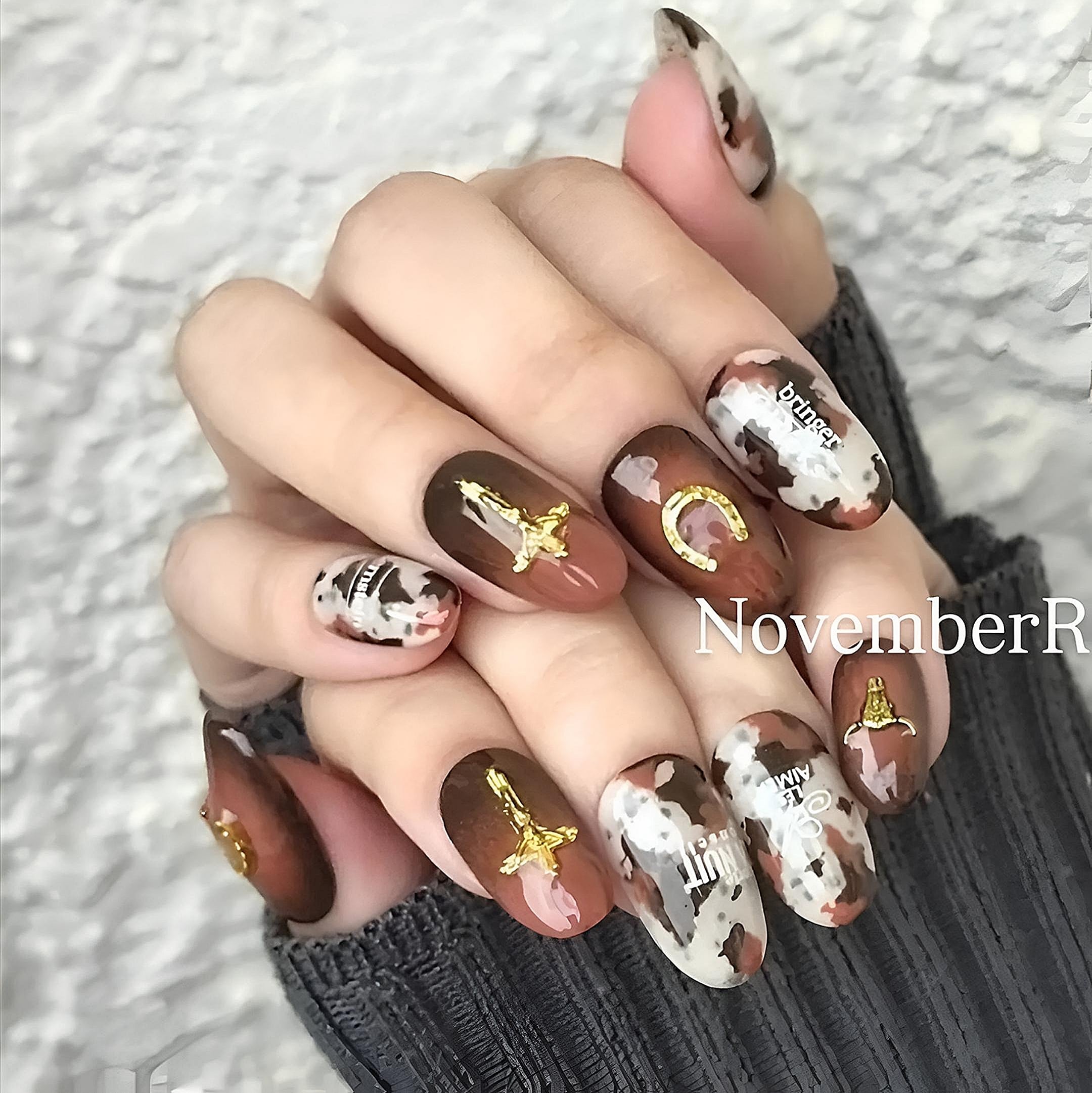 ブラウングラデとカッコいい牛柄。幸運のホースシューのパーツなどもポイント☆