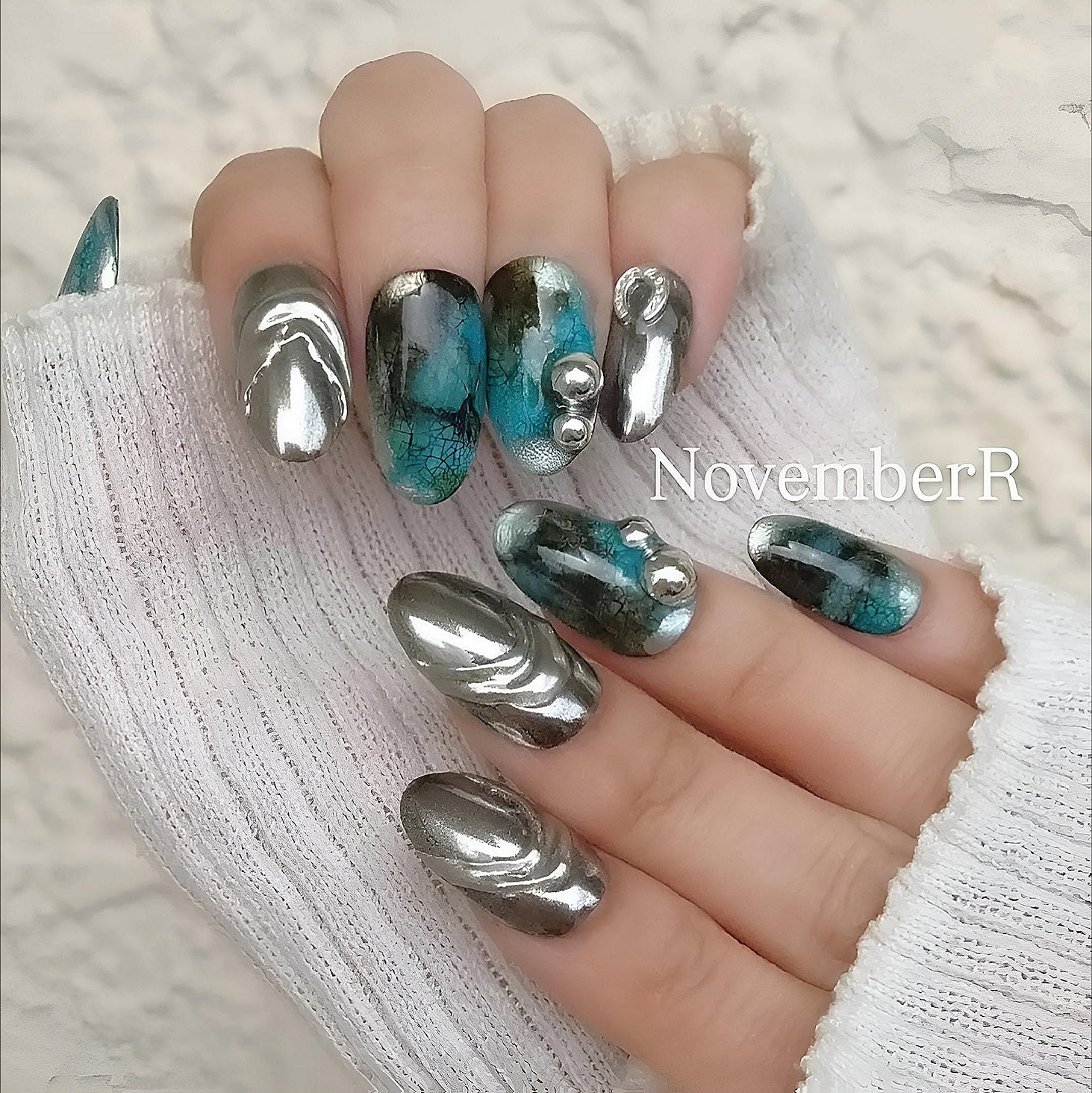 LA879★ターコイズ×シルバーミラーネイルチップ