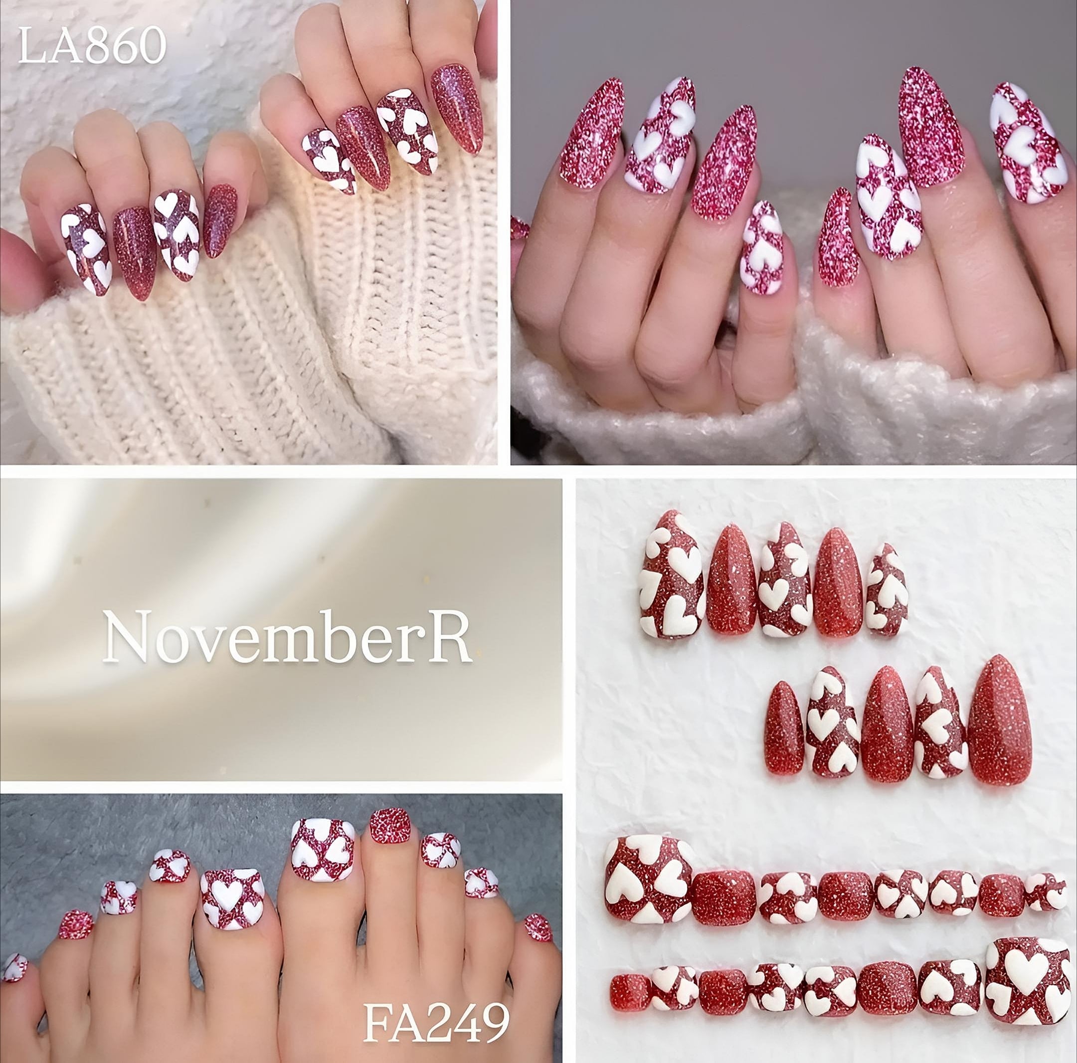 FA249⭐フラッシュ×ぷっくりハートフットネイルチップ