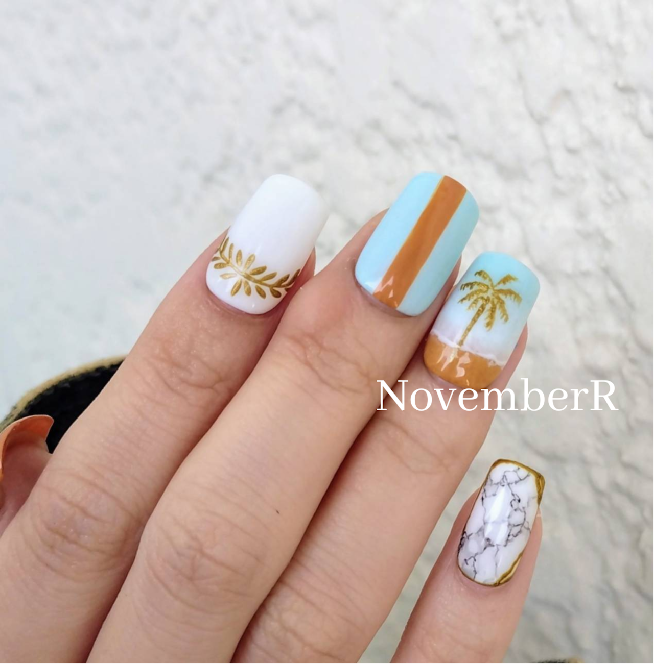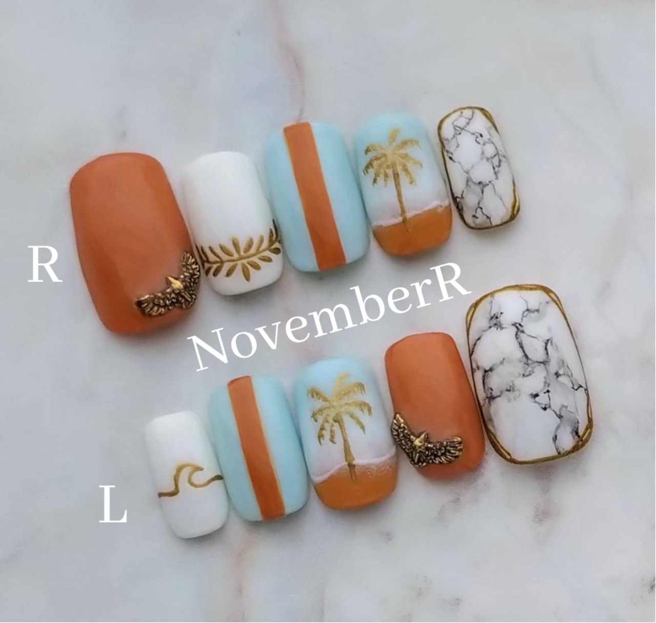 大理石×メタリックゴールドのヤシの木でおしゃれなサーフスタイル⭐カジュアル西海岸風ネイルチップ