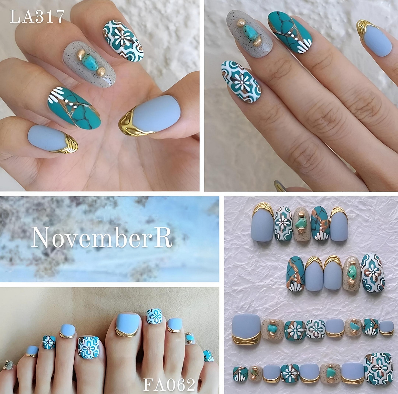 LA317★マットなミラーフレンチとターコイズ&モロッカンネイルチップ