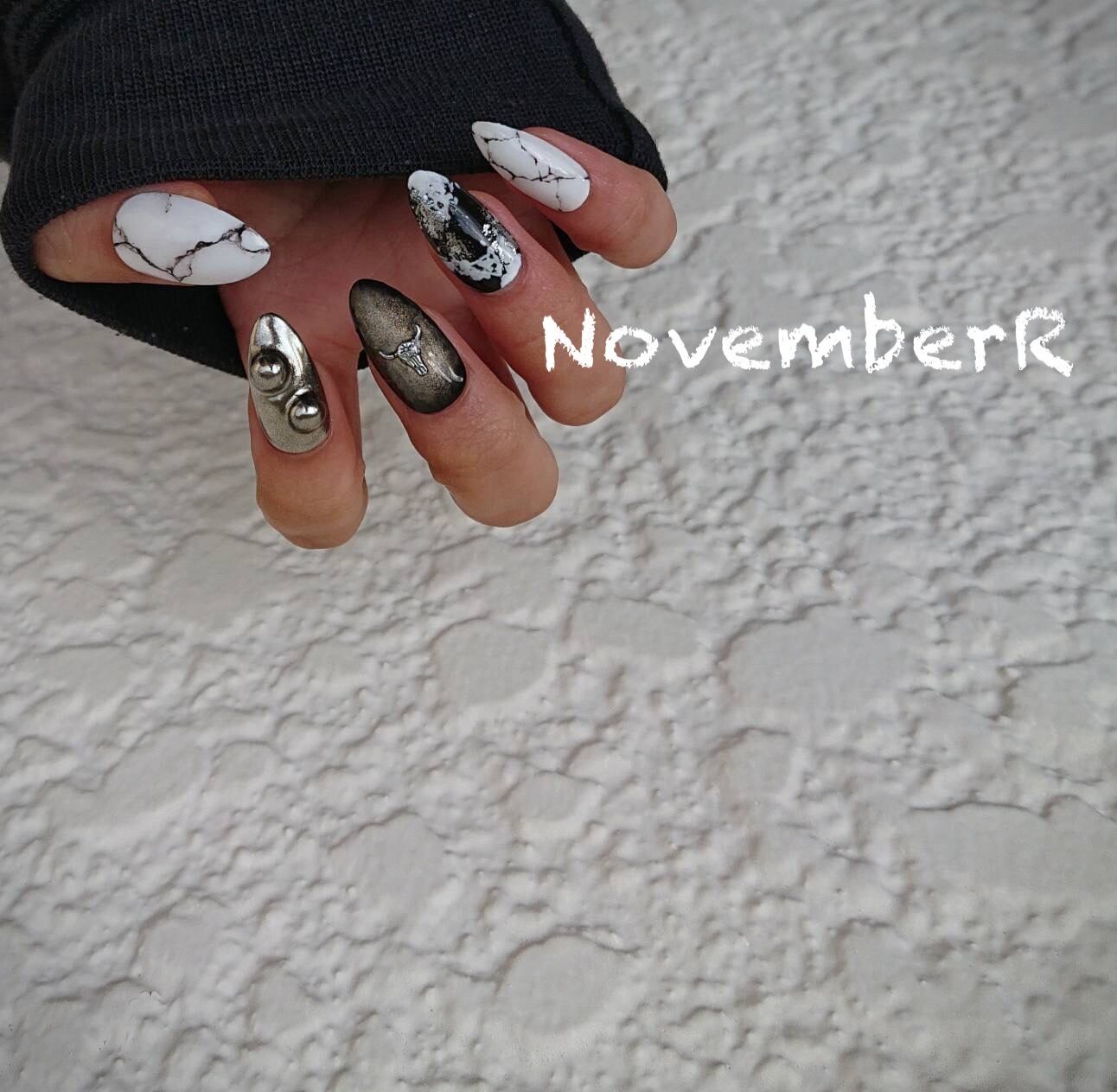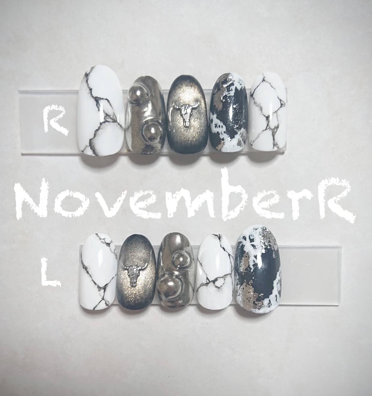 シンプルな大理石ネイルとマグネット、凹凸ニュアンスミラーで大人かっこいいネイルチップ