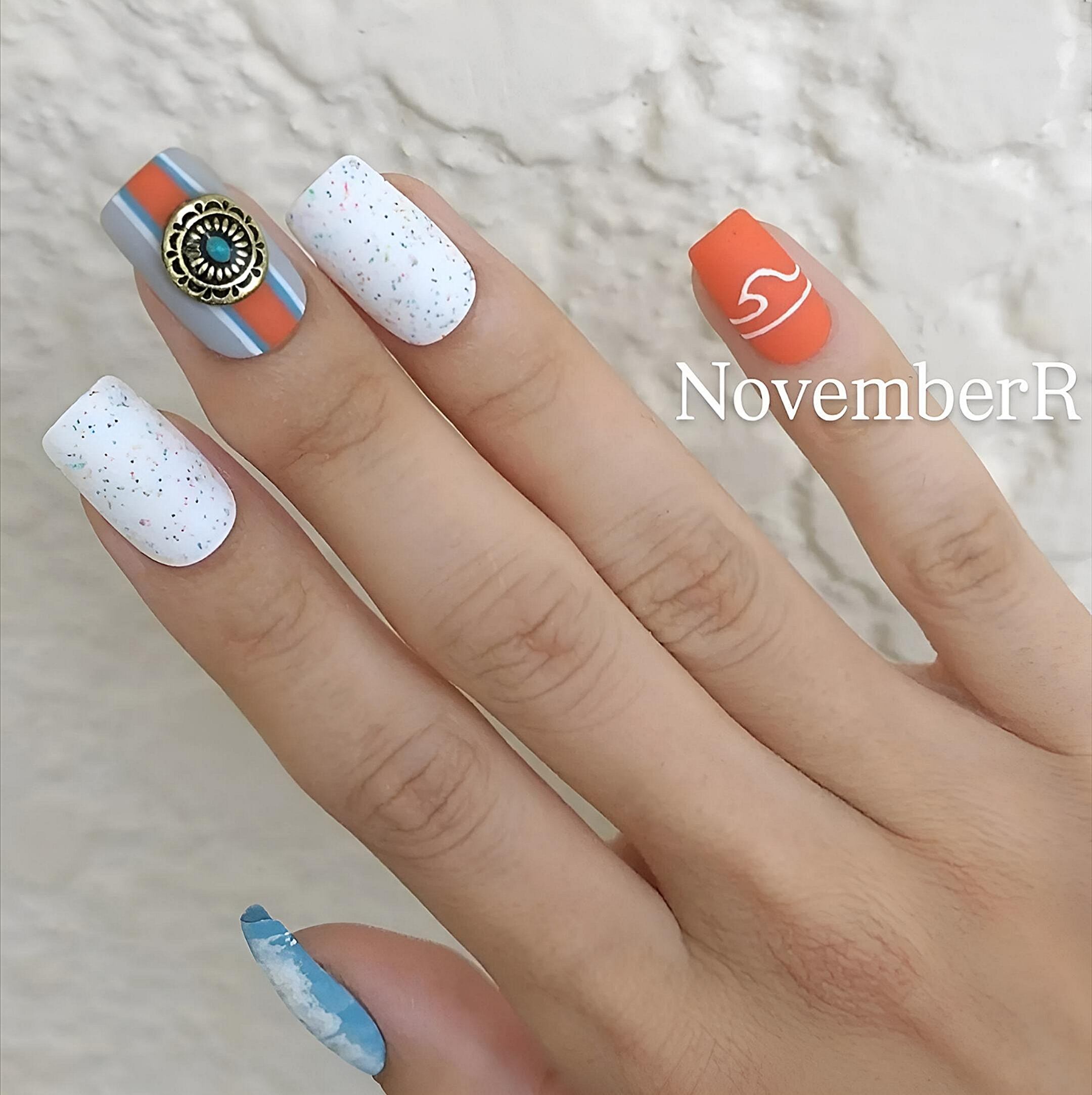 カラフルなツブツブの入った可愛いジェルのワンカラーで西海岸風~仕上げにマット