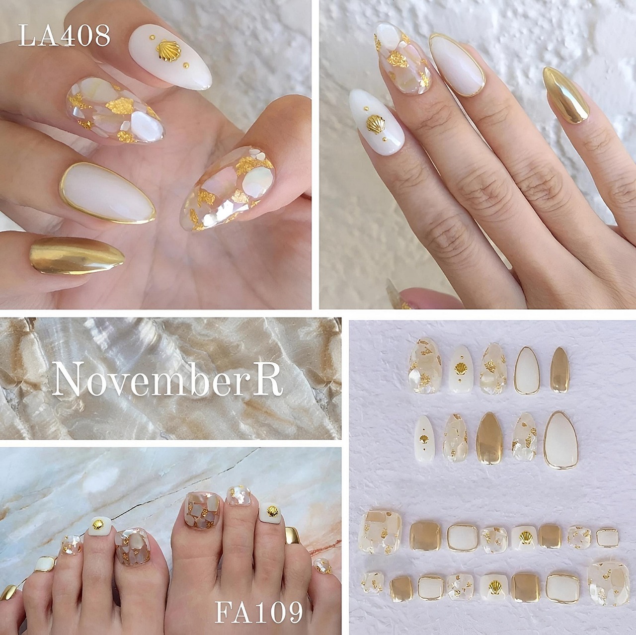 LA408★シンプル大人シェル&ミラーネイルチップ
