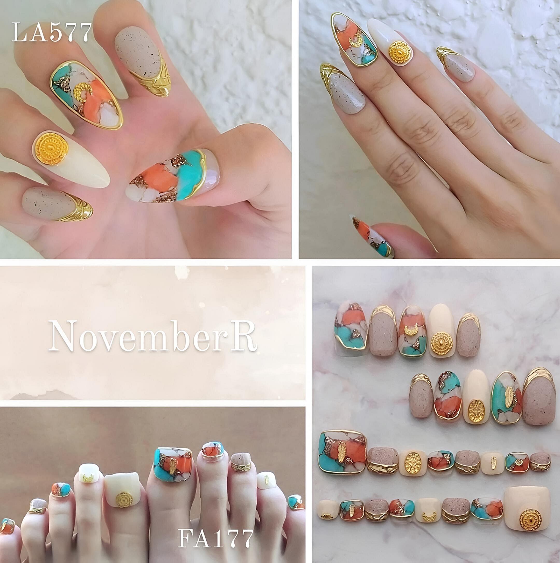 LA577★オイスターカッパーターコイズ×ミラーフレンチネイルチップ