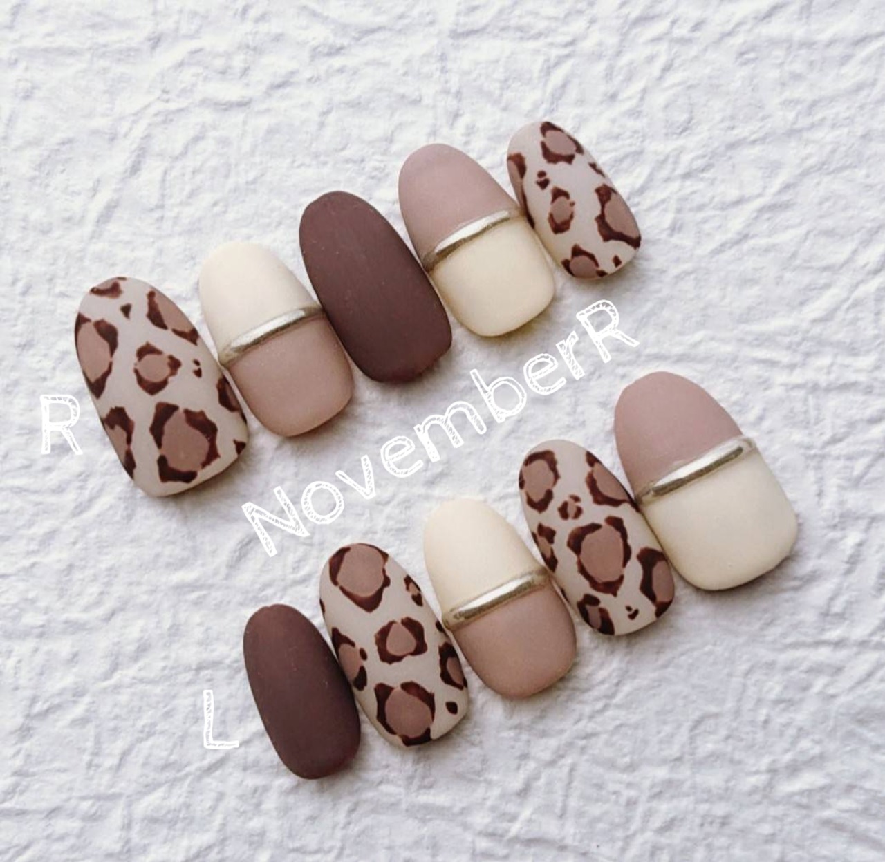 レオパードネイル×ベージュとオフホワイトのバイカラーネイルにシルバーミラーのリングネイル!シンプルオシャレなアニマルネイルチップ★
