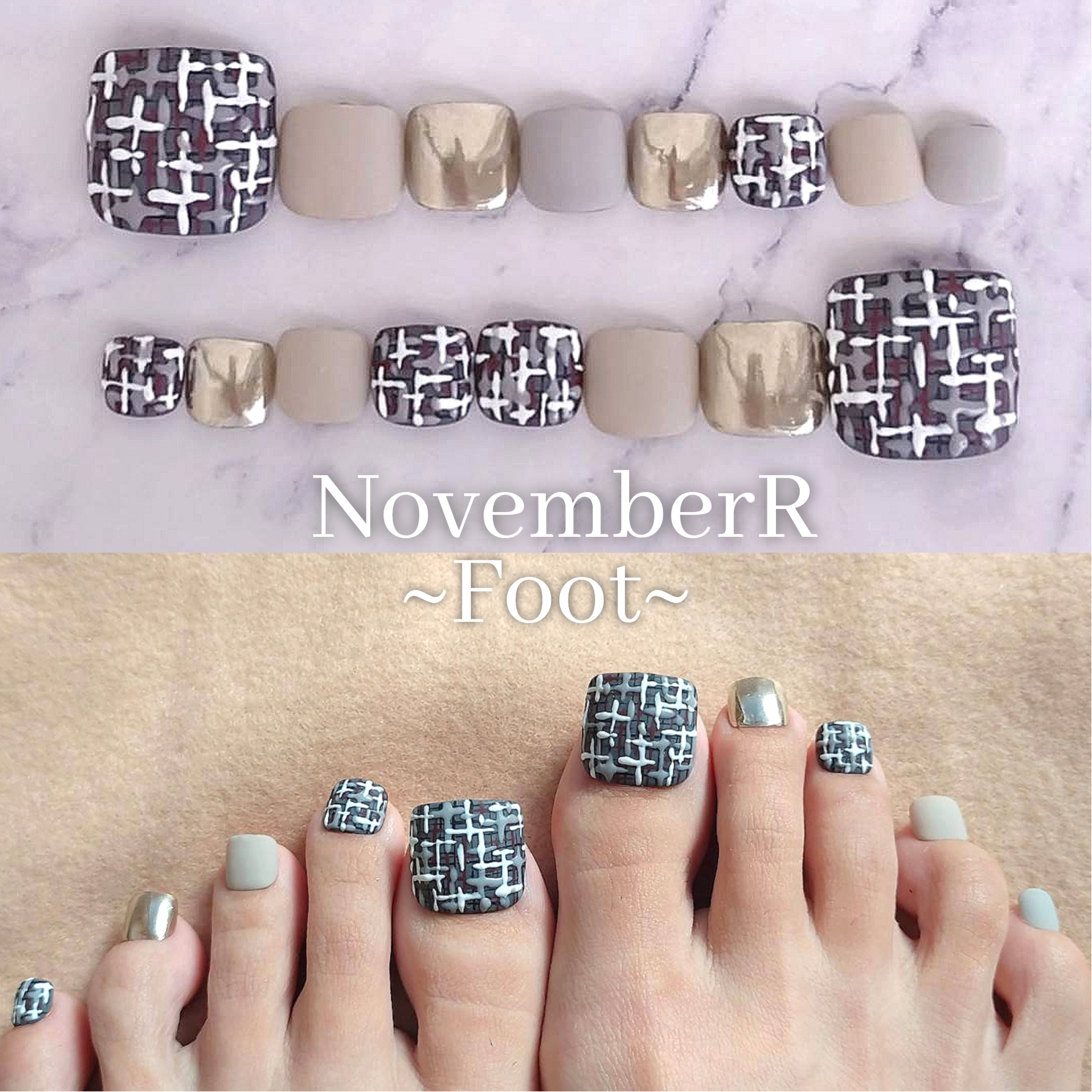 FA155⭐ツイードフットネイルチップ