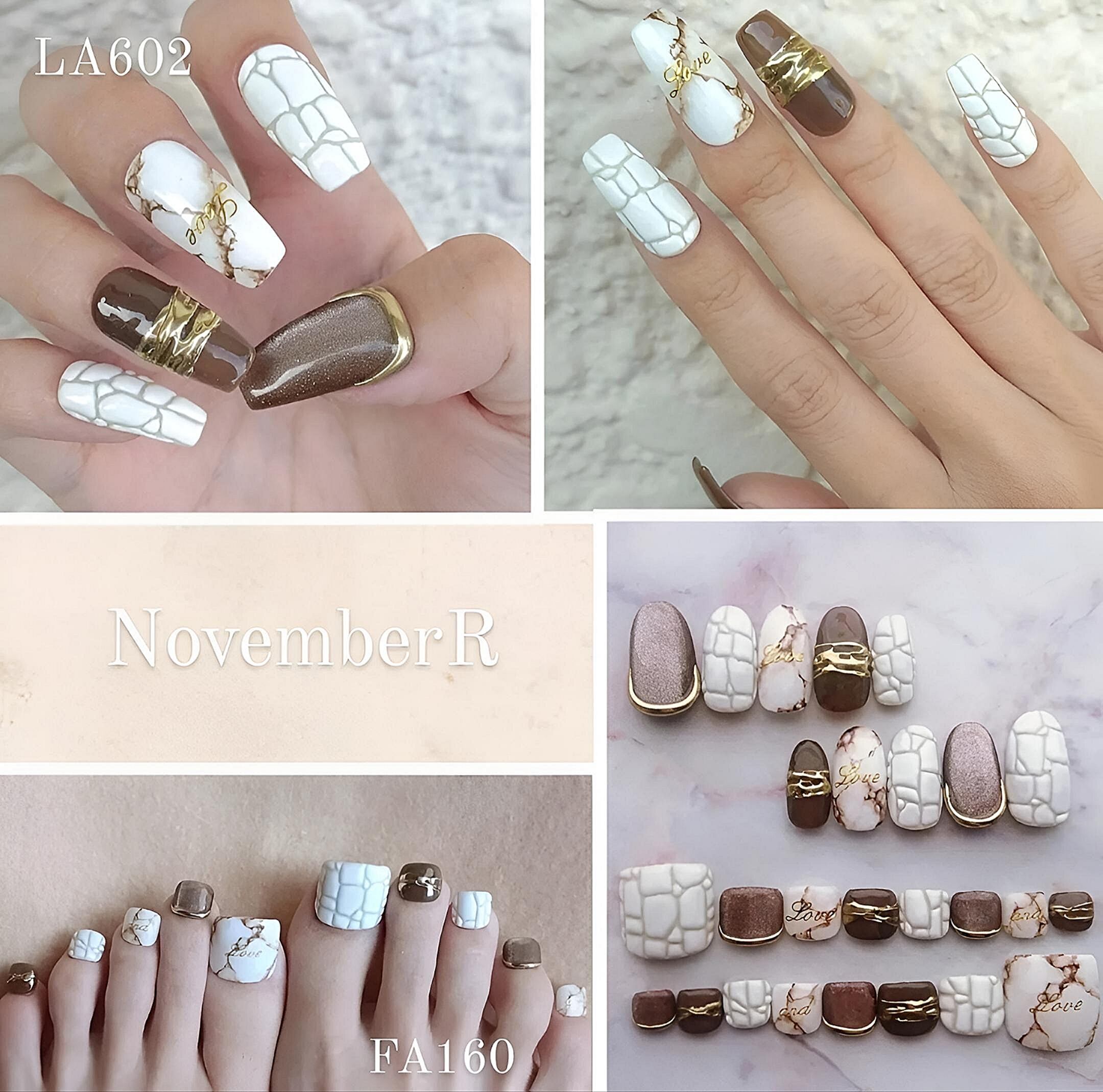 リアルな大理石と凹凸のあるクロコダイルネイル、ブラウンのマグネットネイルにはゴールドミラーのニュアンスデザインのおしゃれアニマルフットネイルチップ★