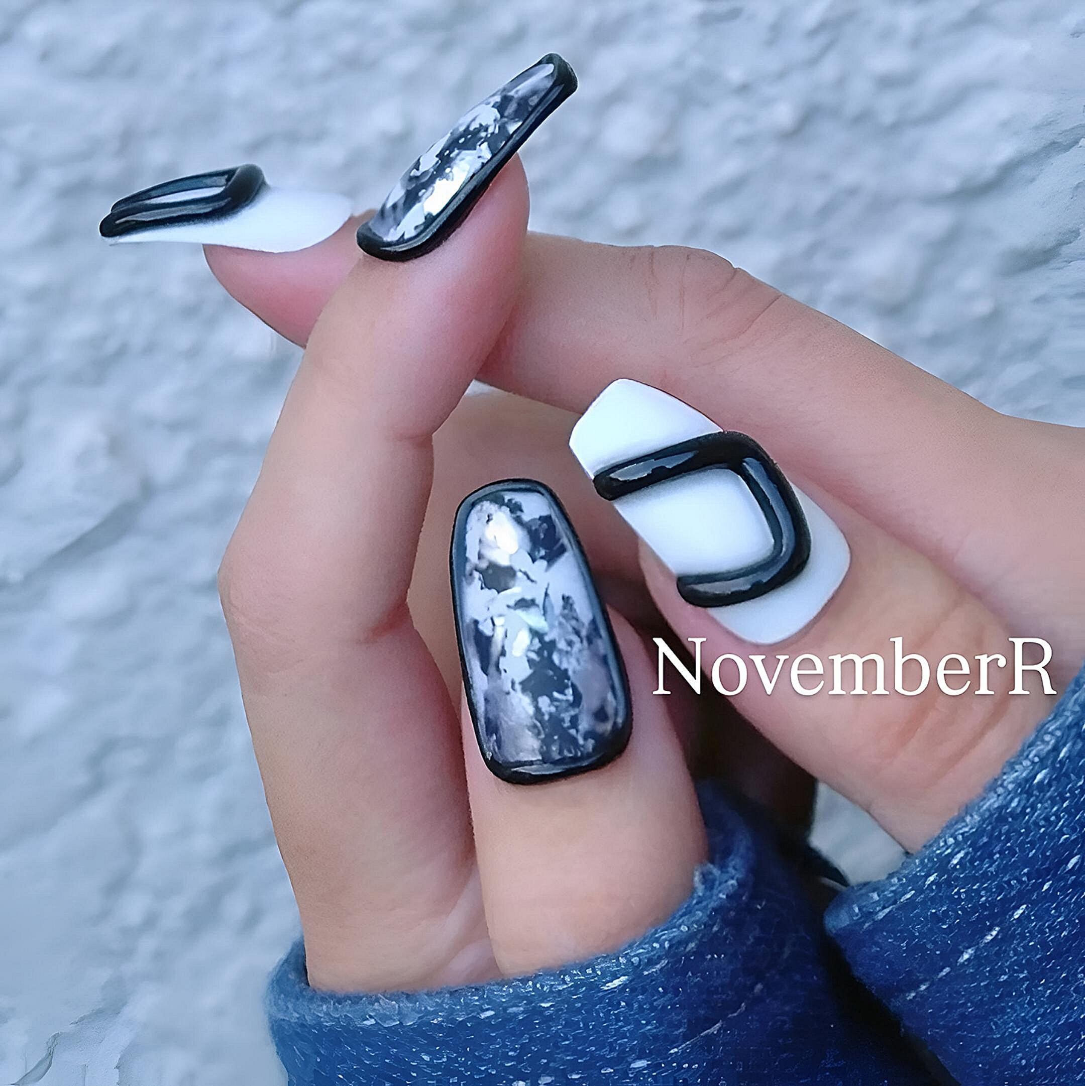 ニュアンスアートにはぷっくりブラックの囲みネイルで唯一無二のおしゃれ冬ネイル